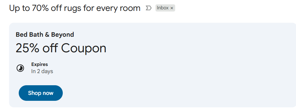 Deal cards are another great way to improve your email promotions. These visual summaries highlight your key offer details, such as discounts, descriptions, start and end dates, and links. They can appear both in the Promotions tab and inside the email itself, giving your offers maximum visibility and a stronger visual presence in the inbox. I haven’t seen a lot of this either which could be a bonus to improve click through.