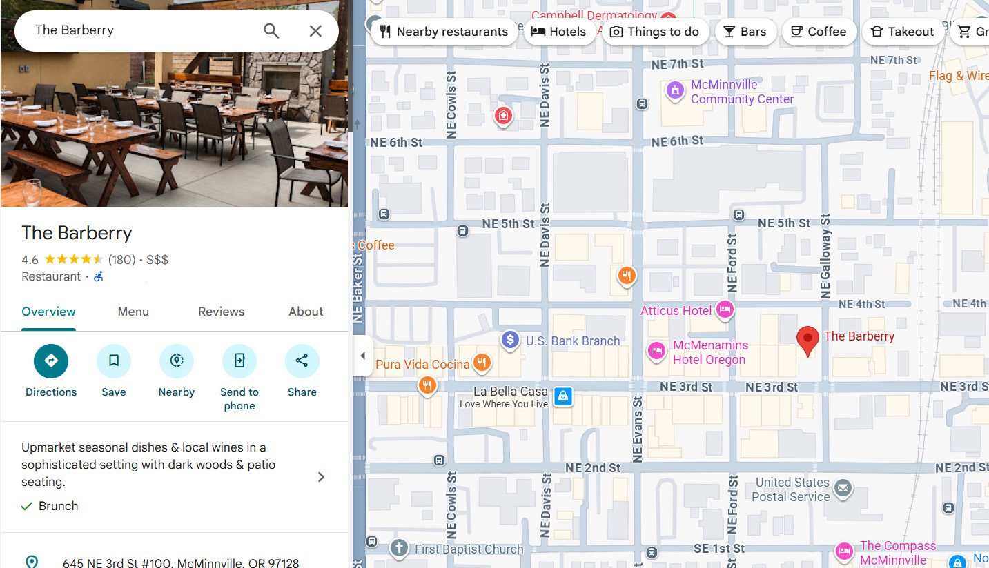 Location is essential for the Barberry. The challenge this business had is that it had three locations, The Barberry, 1882 Grille, and The Oregon Wine Bar. By indexing the business through Yext we improved the maps ranking for the site. In addition, we optimized the Google Listing page to keep with most accurate information for the company.