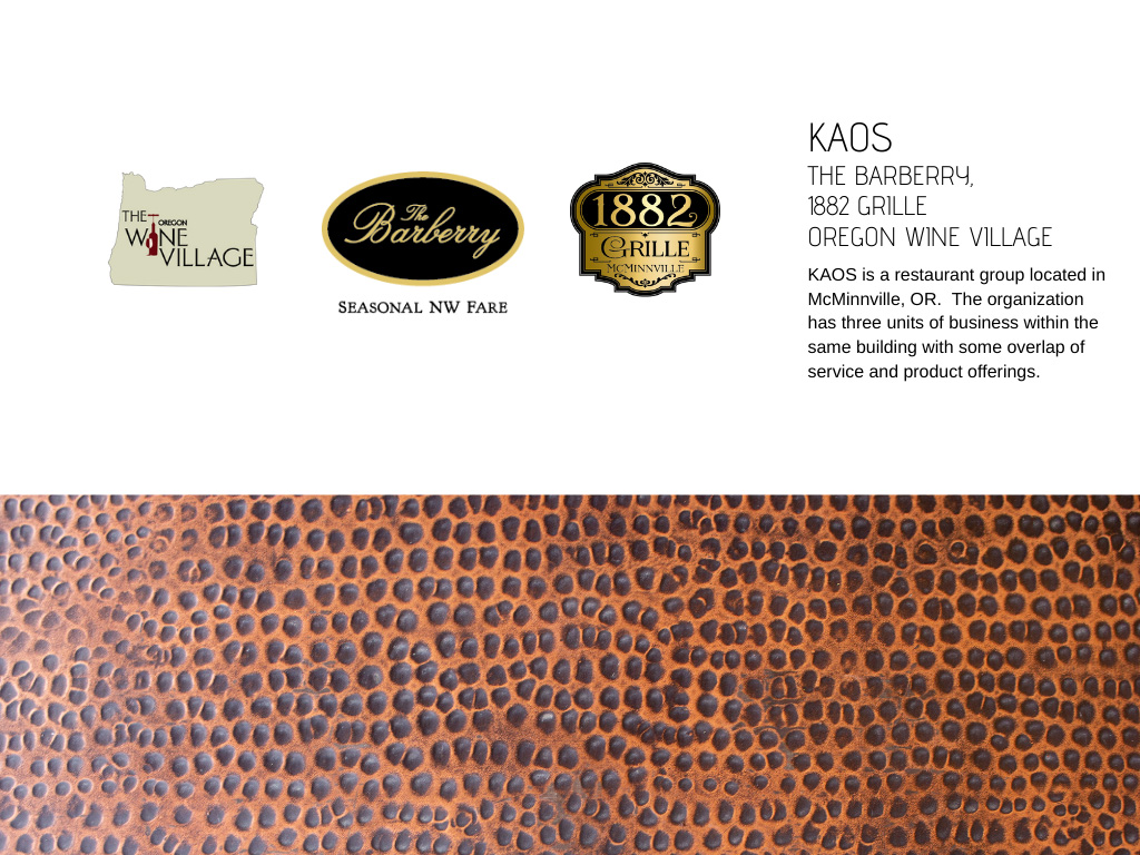 KAOS Group was a restaurant group located in McMinnville, OR. They had an ambitious goal with a large facility containing The Barberry, 1882 Grille, and The Oregon Wine Village. The challenge was to help was a fine dinning restaurant located in McMinnville. The restaurant was looking to improve some of its marketing. The challenge was to help lift its visibility in search results. With a mix of website design, local SEO, video, and paid ads, The Barberry was one element of the scope of work which included the 1882 Grille and the Oregon Wine Village.